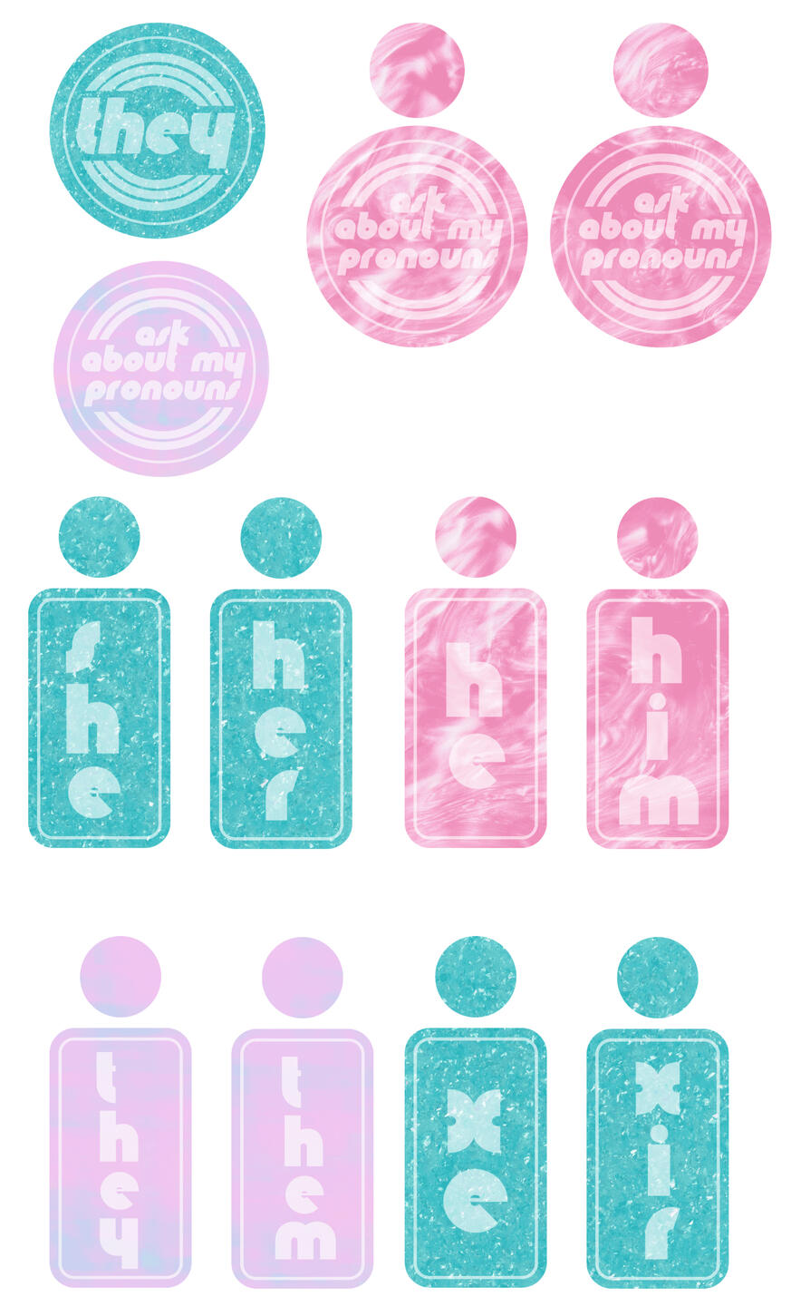armystew pronoun earring series, 2020